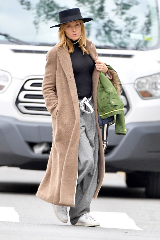 H Sienna Miller έχει αυτή τη μοναδική ικανότητα να ντύνεται τόσο cool, χωρίς να μοιάζει απεριποίητη. Σε μια πρόσφατη εμφάνιση φόρεσε μια πλεκτή παντελόνα με δερμάτινα λευκά sneakers, μαύρο ζιβάγκο και casual γούνα. Το καπέλο δίνει στην εμφάνιση ένα ενημερωμένο style.